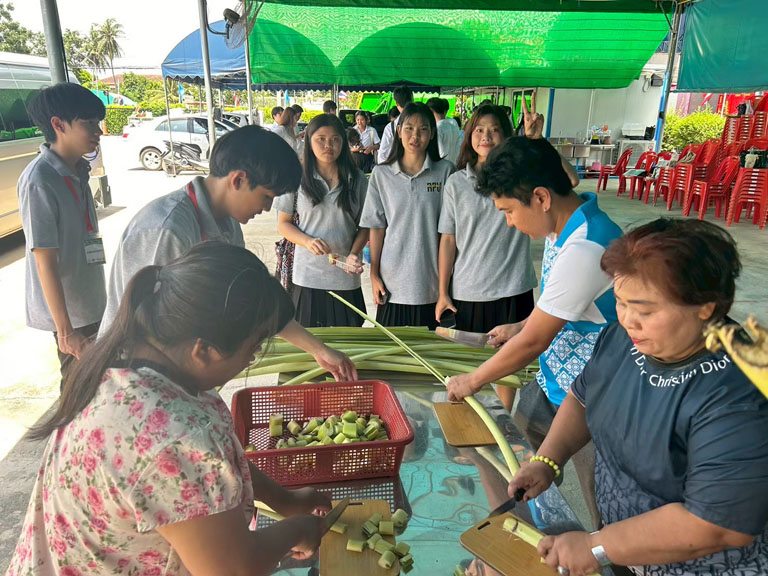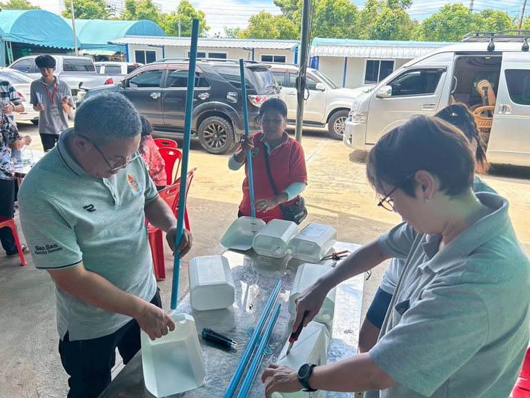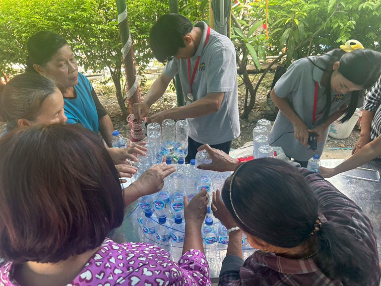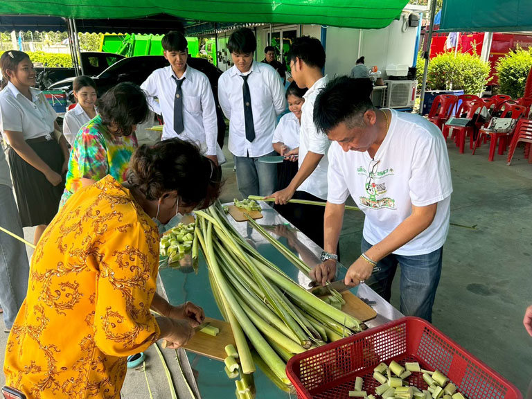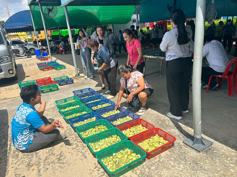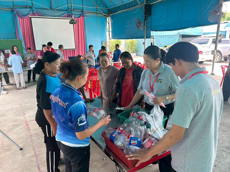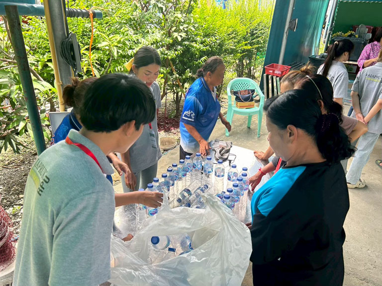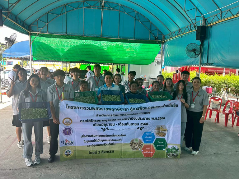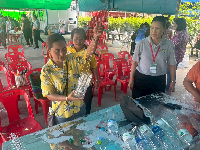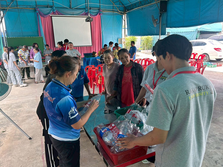 มหาวิทยาลัยราชพฤกษ์ร่วมกับผู้นำชุมชนจำนวน 20 คน จัดกิจกรรมทำวัสดุกันกระแทกจากก้านกล้วย เมื่อวันที่ 20 สิงหาคม 2568 โดยกลุ่มผู้นำชุมชนสามารถทำวัสดุกันกระแทกจากก้านกล้วยได้หมู่บ้านละ 16 ตะกร้า รวมทั้งสิ้น 80 ตะกร้า และจัดกิจกรรมผลิตภัณฑ์จากพลาสติก เมื่อวันที่ 28 สิงหาคม 2568 โดยผู้นำชุมชนได้ทำการผลิตผลิตภัณฑ์พลาสติกจากการอัปไซเคิล ดังนี้