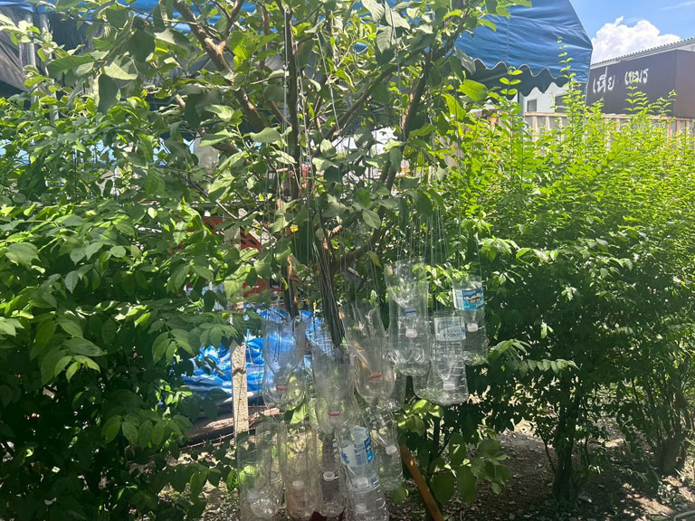 4. ที่แขวนเสื้อจากคอขวดน้ำพลาสติก กระถางปลูกต้นไม้จากขววดน้ำพลาสติกพร้อมลวดแขวน จำนวน 80 กระถาง และขยายผลสู่การพัฒนาชุมชนต่อไป